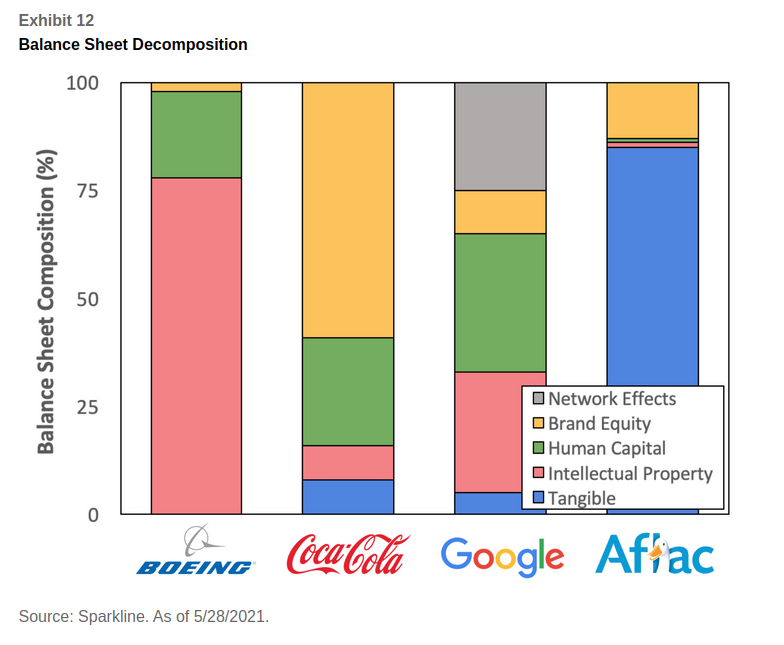 Value investing is all about getting value for your money. Traditional valuation ratios measure the quantity of tangible assets obtained for a given dollar of investment. Our metrics are conceptually identical, except they focus on intangible sources of value (e.g., # patents, # PhD employees, $ brand equity per dollar invested). Our hope is that this metric helps us find efficient ways to obtain intangible assets.”