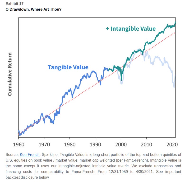 While academic in consideration Ken suggests that the value factor if expanded in definition to consider intangibles would not have had a post 2008 financial crisis drawdown and would continue to outperform through the 2010s.