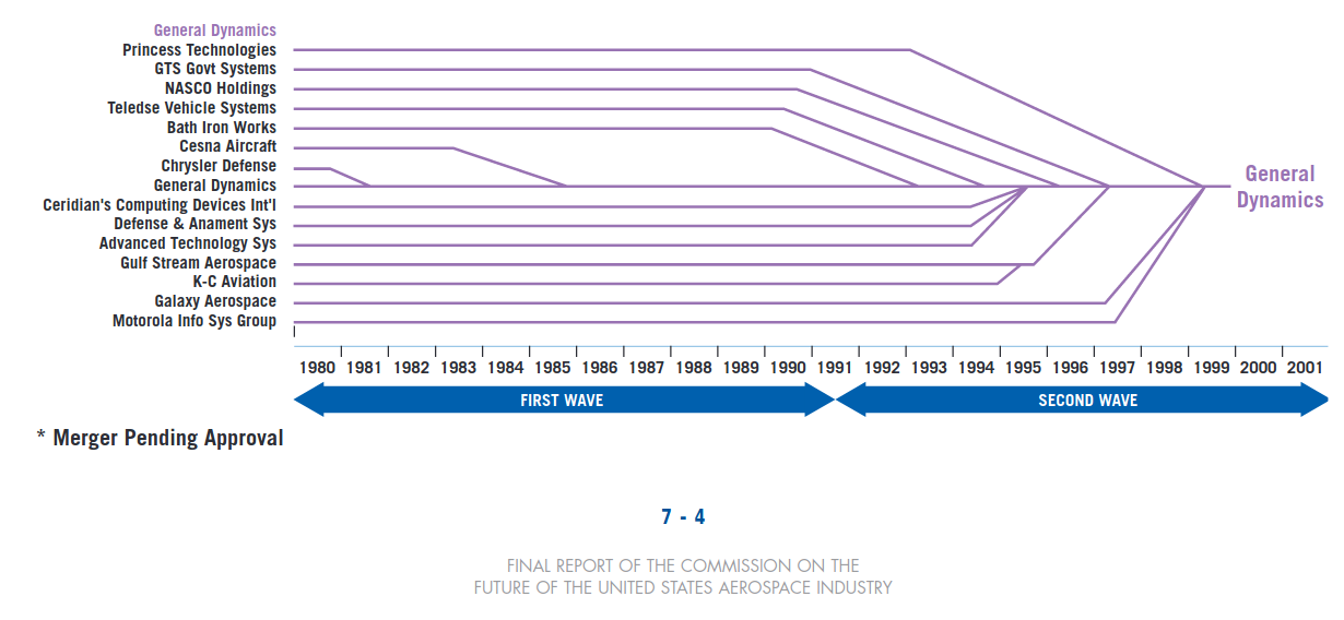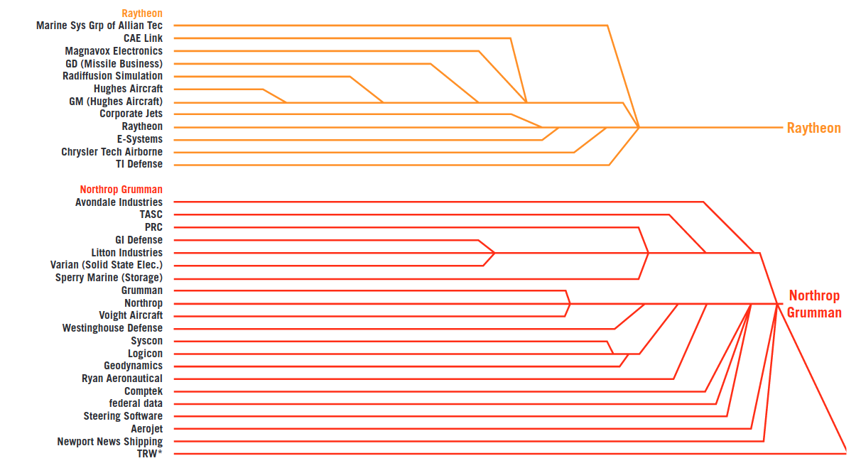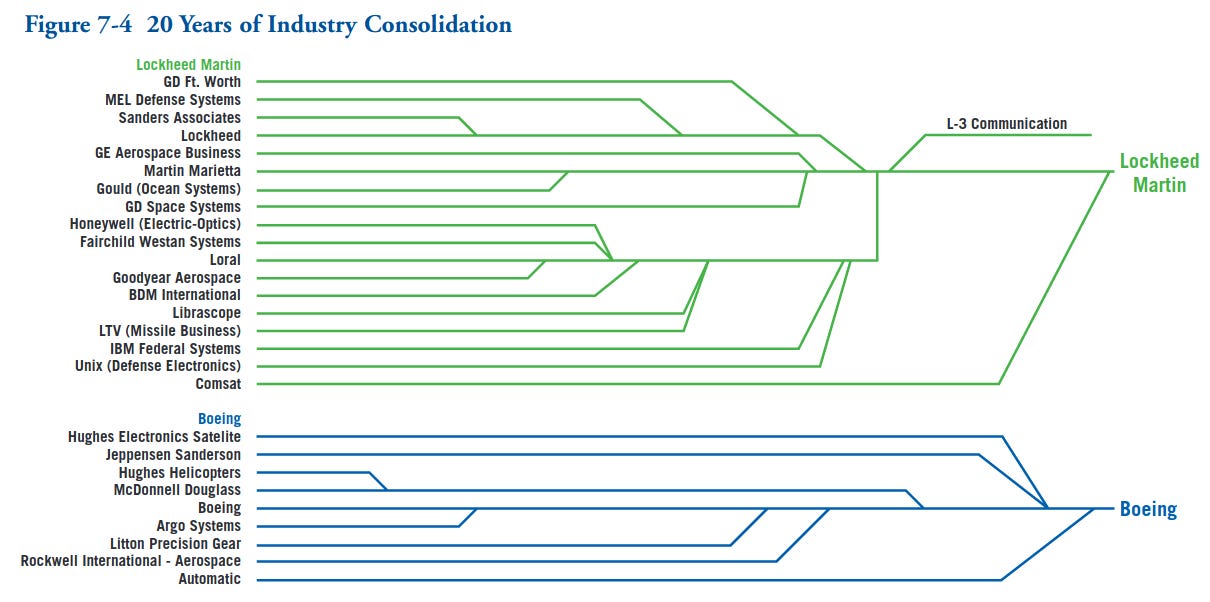 It is remarkable actually the degree of rollups and consolidation that the defense contractors have accomplished. Is this good for innovation? Most likely not. Monopolies while funding R&D generally are not incentivized to self disrupt in the Clayton Christensen sense of the word disruption.