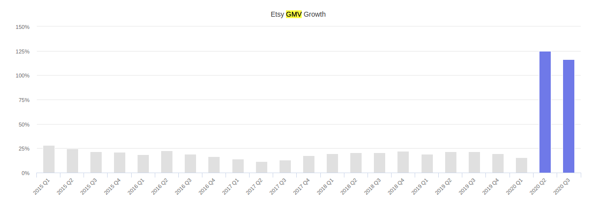 Etsy is a standout winner in the US e-commerce arena nearly doubling it’s gross merchandise volume and attracting massive demand and subsequently new sellers to the platform.