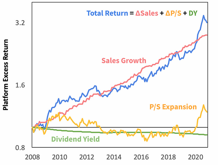 Additionally platforms have outgrown the general stock market by an increasing amount overtime.