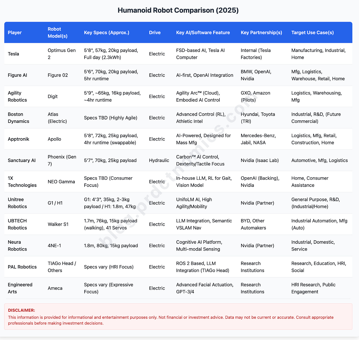 Who’s actually building these mechanical humans? The field is crowded, but a few key players define the major strategic bets being placed.